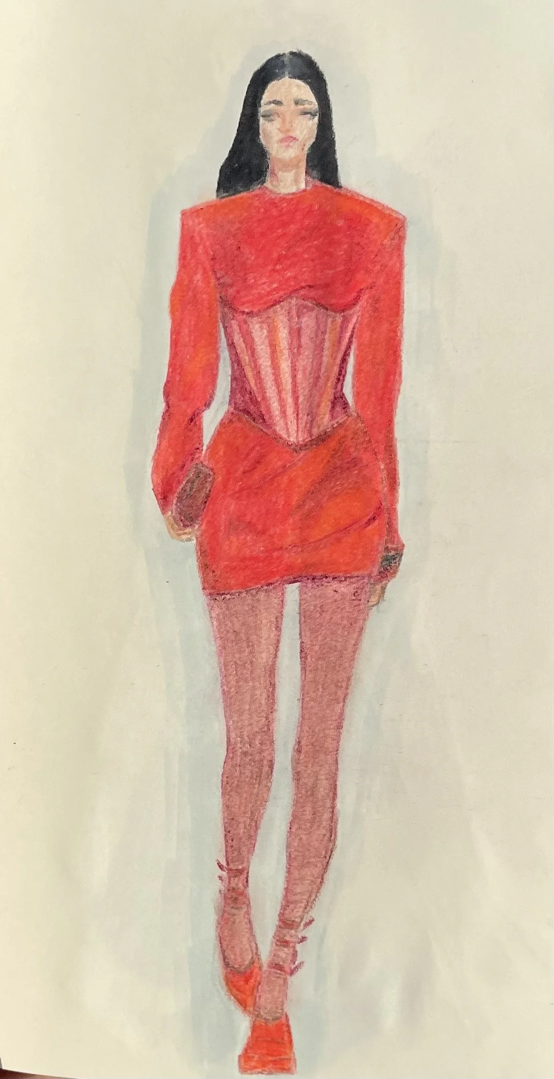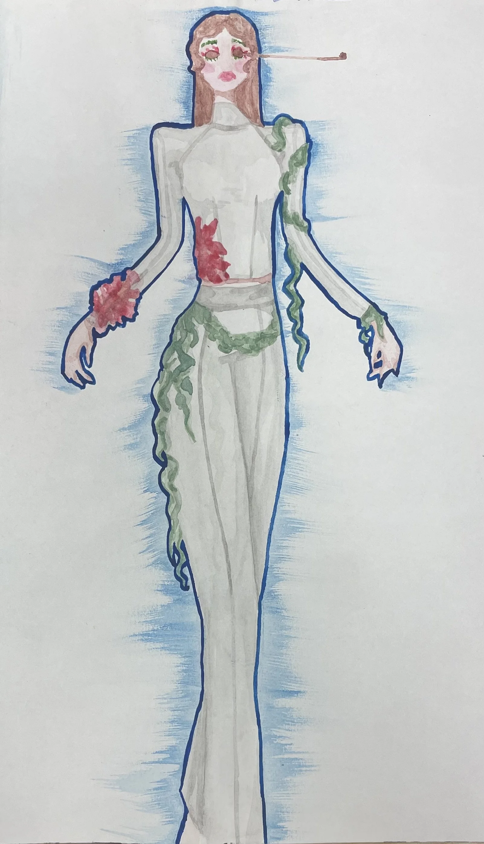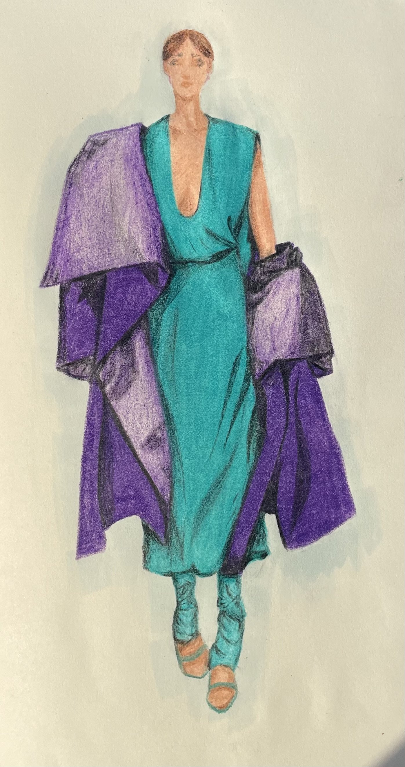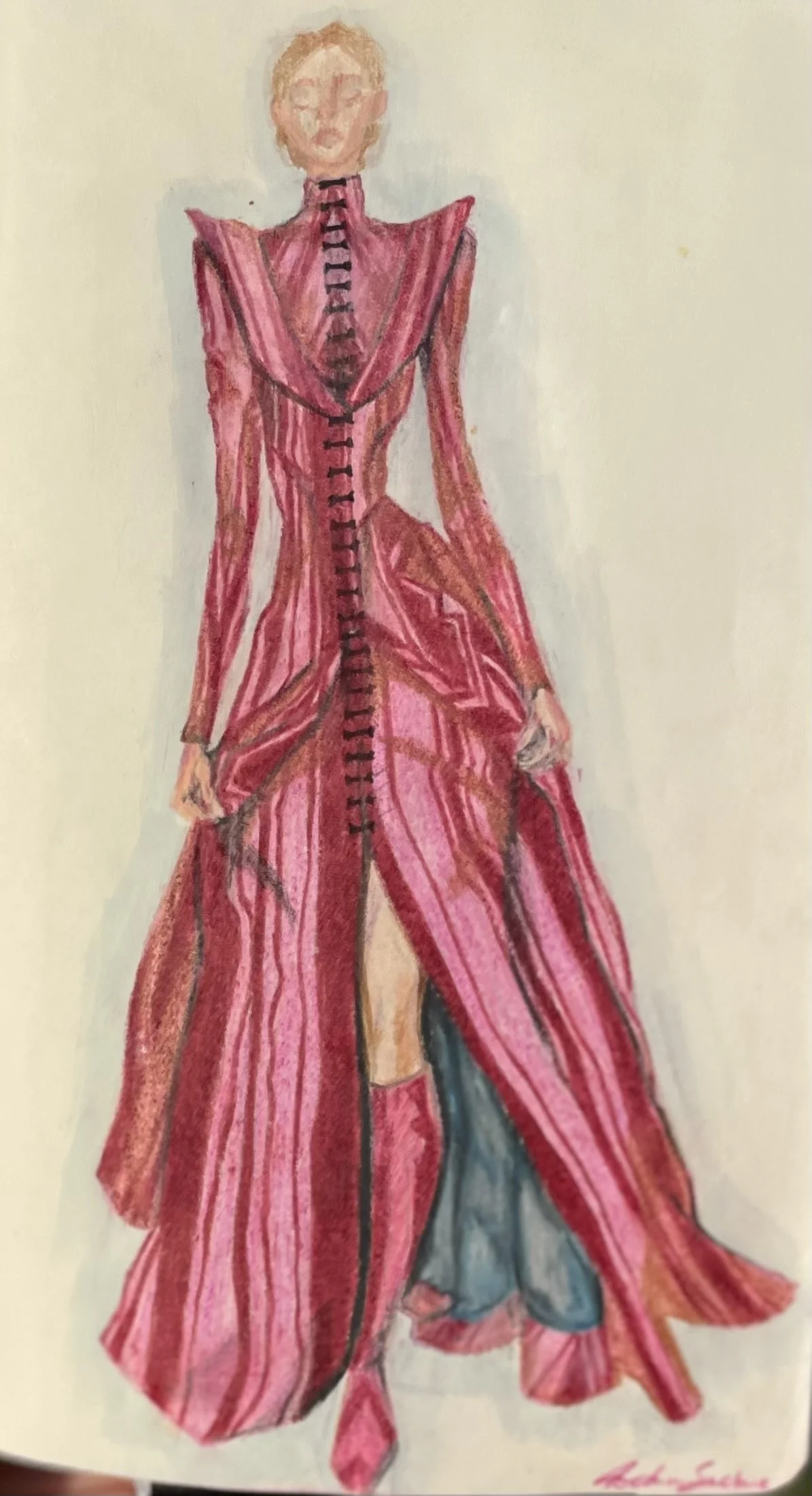 The creative process tends to begin with a rough draft inspired by a concept, for Taetum Sinclair this looks like throwing together a sketch or two. Sinclair’s preferred mediums are ink, colored pencil, and watercolour. Shown below are a few drawings which marked the beginning of conceptual design.